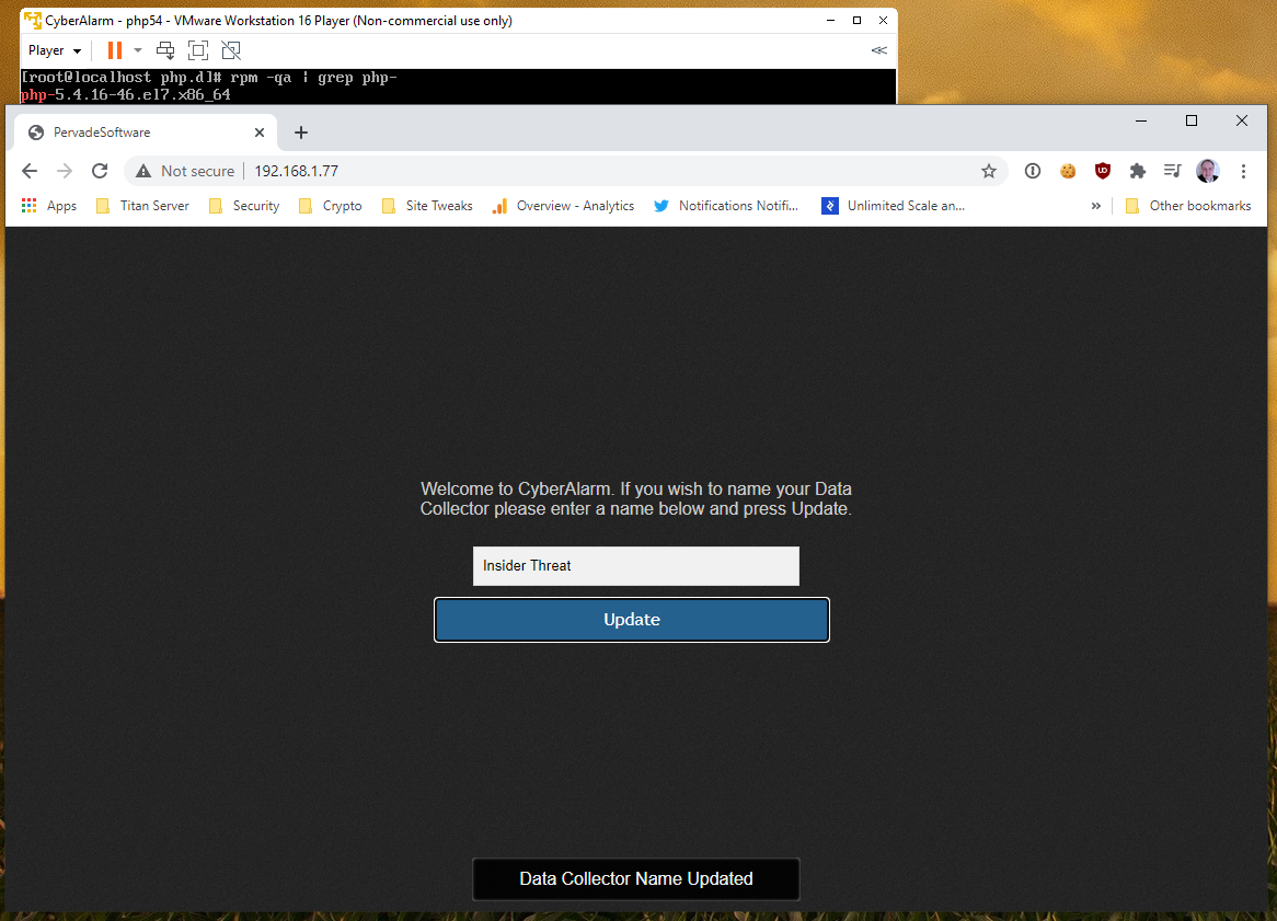 There's the one & only UI. The PDF said "CyberAlarm", the website said "CyberAlarm", the filename is "CyberAlarm.ova" and the UI says it's..... CyberAlarm. But, I'm expected to know it's a demonstrably dangerous, internal build of an "OpView Collector".