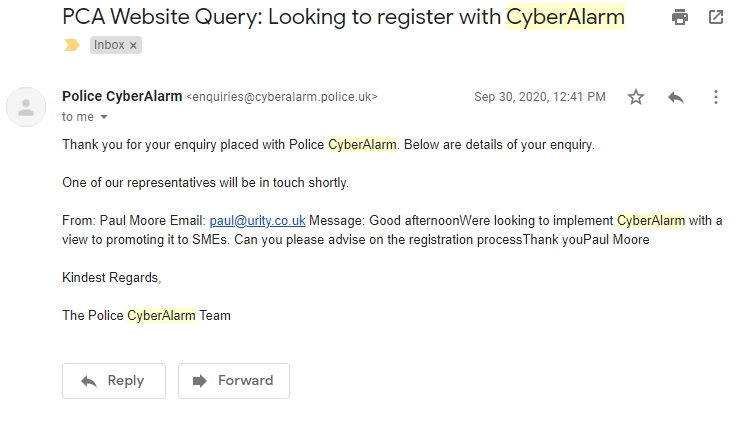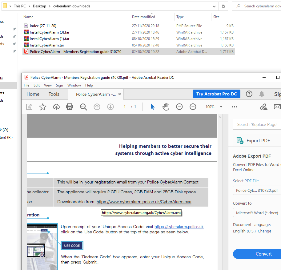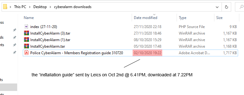 Although the text says "cyberalarm.police.uk", the actual hyperlink takes you to "cyberalarm.org.uk" - housing the dangerous internal build!