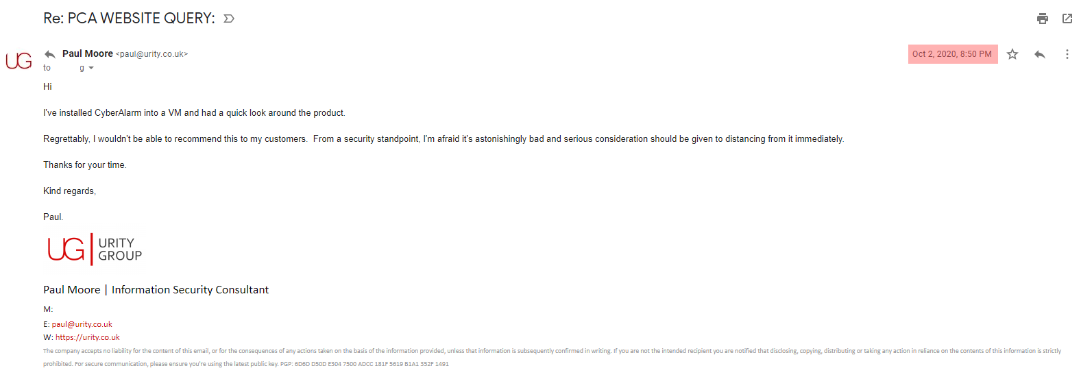 One last thing though... breach of copyright for using the CyberAlarm logo?! If this isn't the definition of a criticism/review, I'm not sure what is.