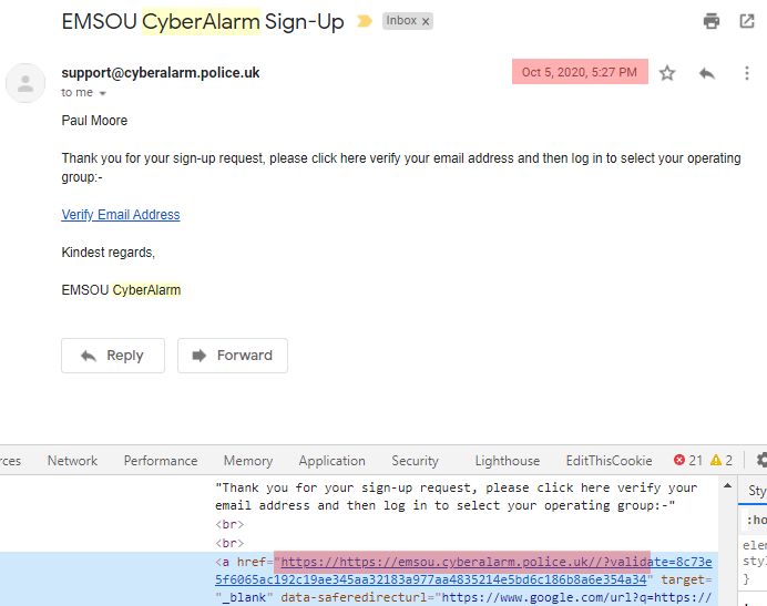 This is absolutely irrefutable proof that, contrary to NPCC's claim that I stumbled upon it, I simply used the link they provided by email. They go on to claim it would have been obvious that it wasn't a "real" CyberAlarm data collector, having later seen the "production" one.