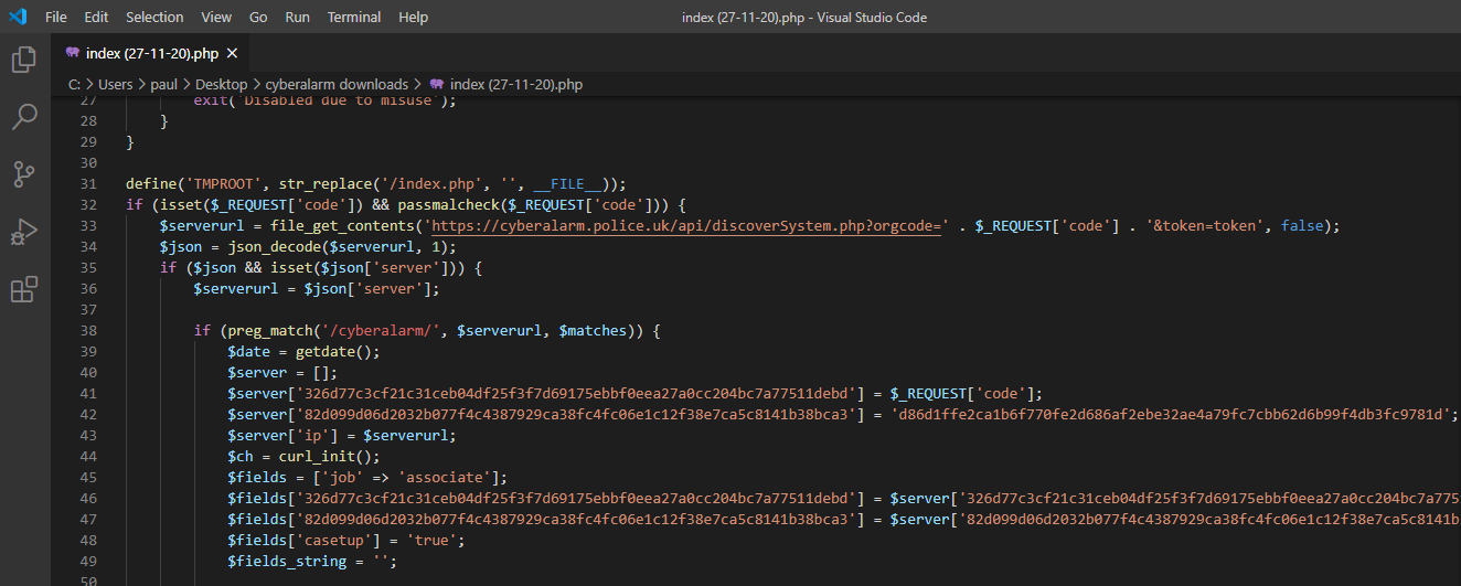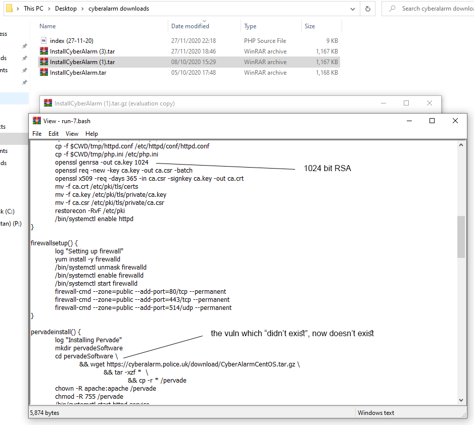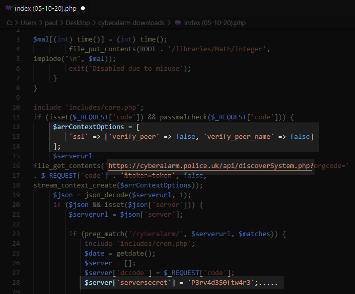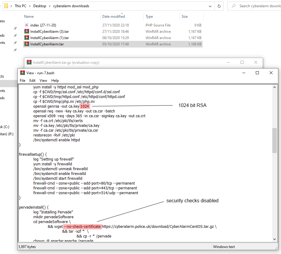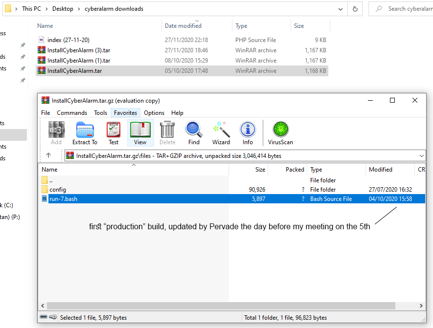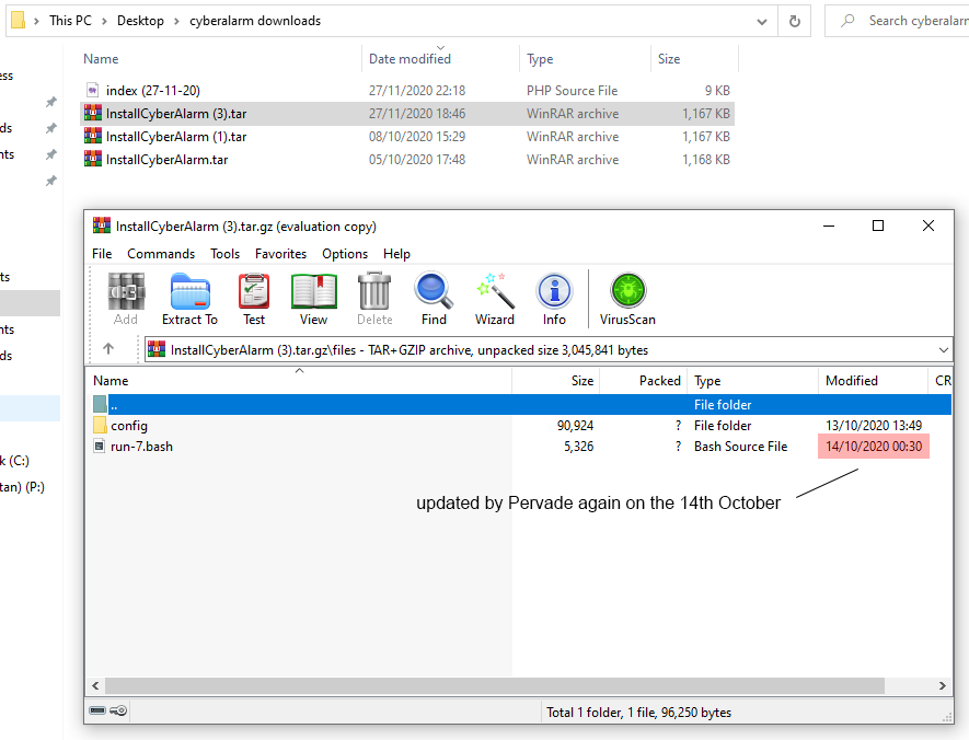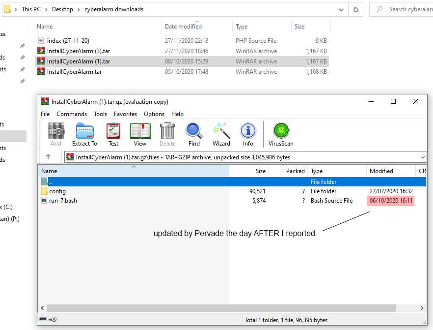 If you've downloaded CyberAlarm previously, you'll be able to hash the files to prove I've not modified anything other than filenames. If even a single character in any file changes, the entire hash would be different - thus proving we have different versions.