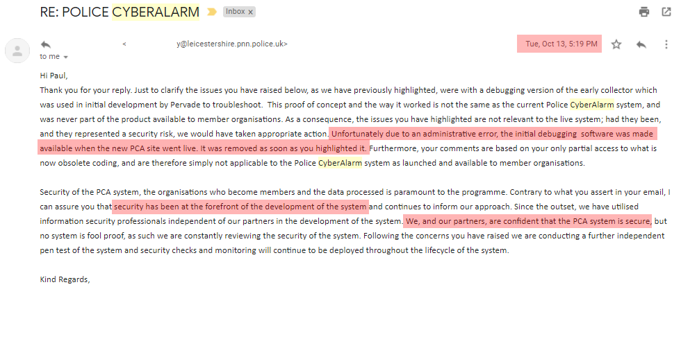 Following my review of the infamous "development/test build", NPCC published an article stating it's "completely untrue", how it was "a completely different piece of software", how it "has never formed part of the Police CyberAlarm system in ANY live version" and I "stumbled upon" the development link.