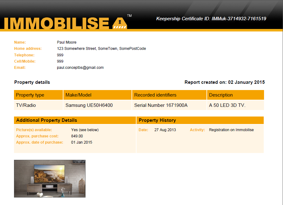 But, you're back to work next week and your precious TV will be left unattended at home. If it's stolen, reporting the theft to Immobilise can increase the likelihood of its safe return. Once you've registered your device, you're given a certificate of ownership.