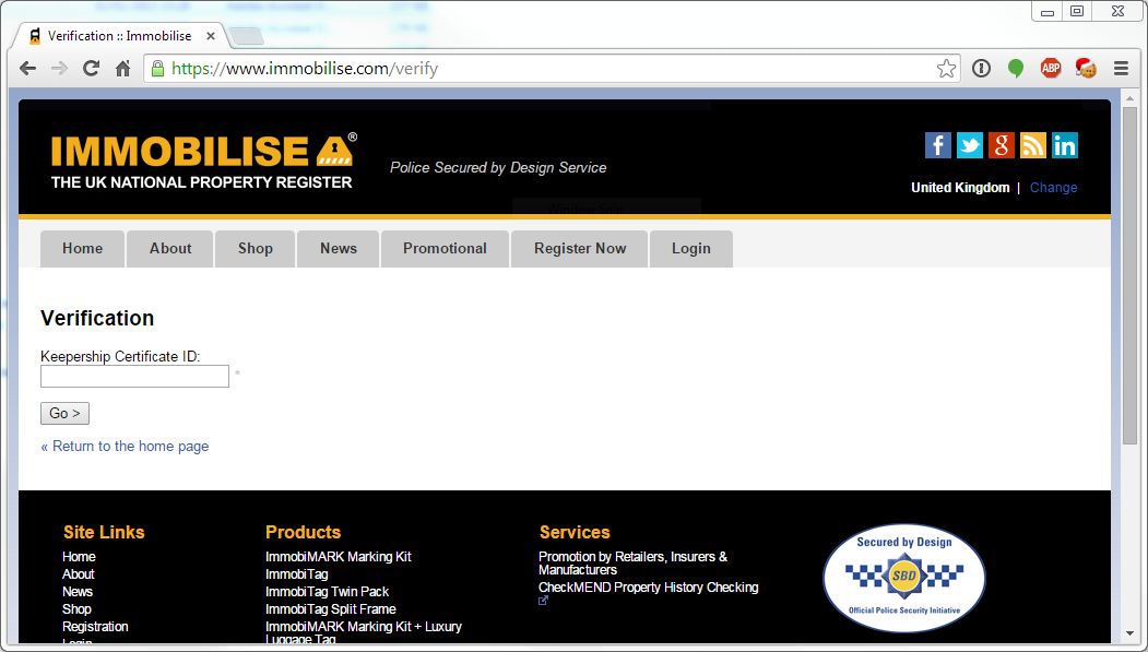 Immobilise is the public-facing area of the system, so it's quite easy to carry out some basic checks.