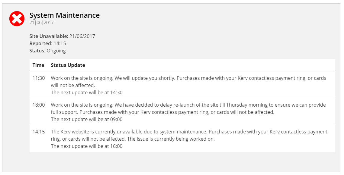 After a matter of minutes, Mr Phil Campbell (Director @ Kerv Wearables) emailed to request further information. After a lengthy telephone conversation, I advised Phil to immediately take the site offline until a review could be performed. Almost immediately, my access was revoked and at 2:15PM, the site was taken offline completely.