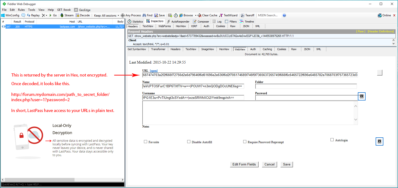 You see, LastPass doesn't encrypt metadata either! It's stored, by LastPass, in plain text.